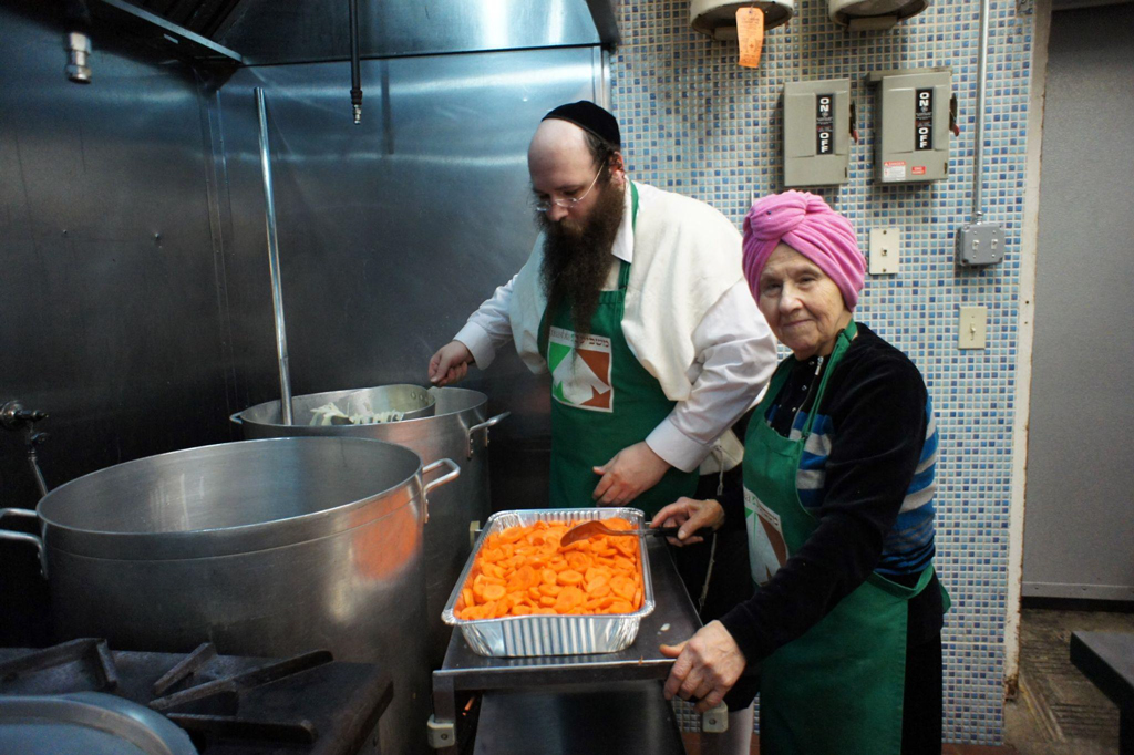 Holocaust survivor Miriam Leah Rapaport with grandson. Alexander Rapaport of Masbia, cooking huge pots of food late at night for victims of Hurricane Sandy in November 2012